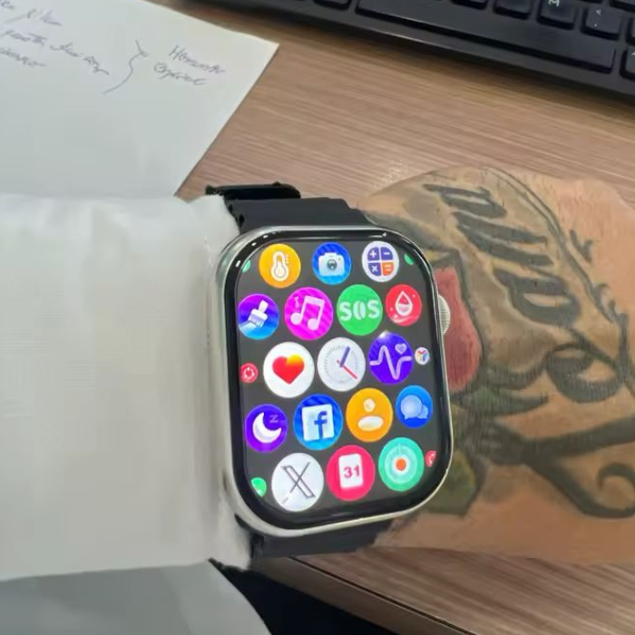 La Smart Watch Série 10 est équipée d’un grand écran tactile couleur, d’un suivi santé complet et d’un système Bluetooth stable pour connecter votre téléphone en quelques secondes. Elle vous permet de consulter vos messages, vos appels, vos applications et vos statistiques sportives directement au poignet. Le design est moderne, léger et personnalisable grâce aux 7 bracelets inclus, allant du noir classique à des couleurs plus tendance comme l’orange ou le beige.